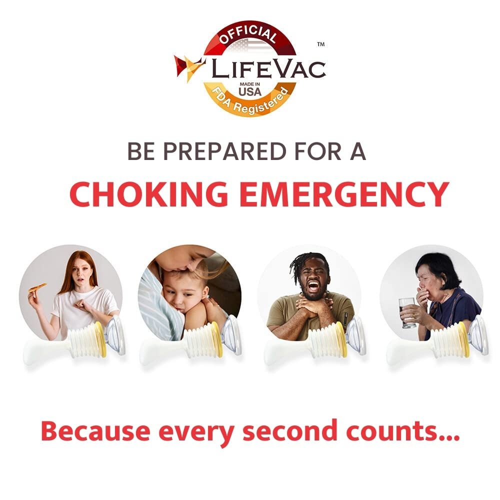 This one kit covers children and adults. Never expires. Free replacement LifeVac when used in a choking emergency!